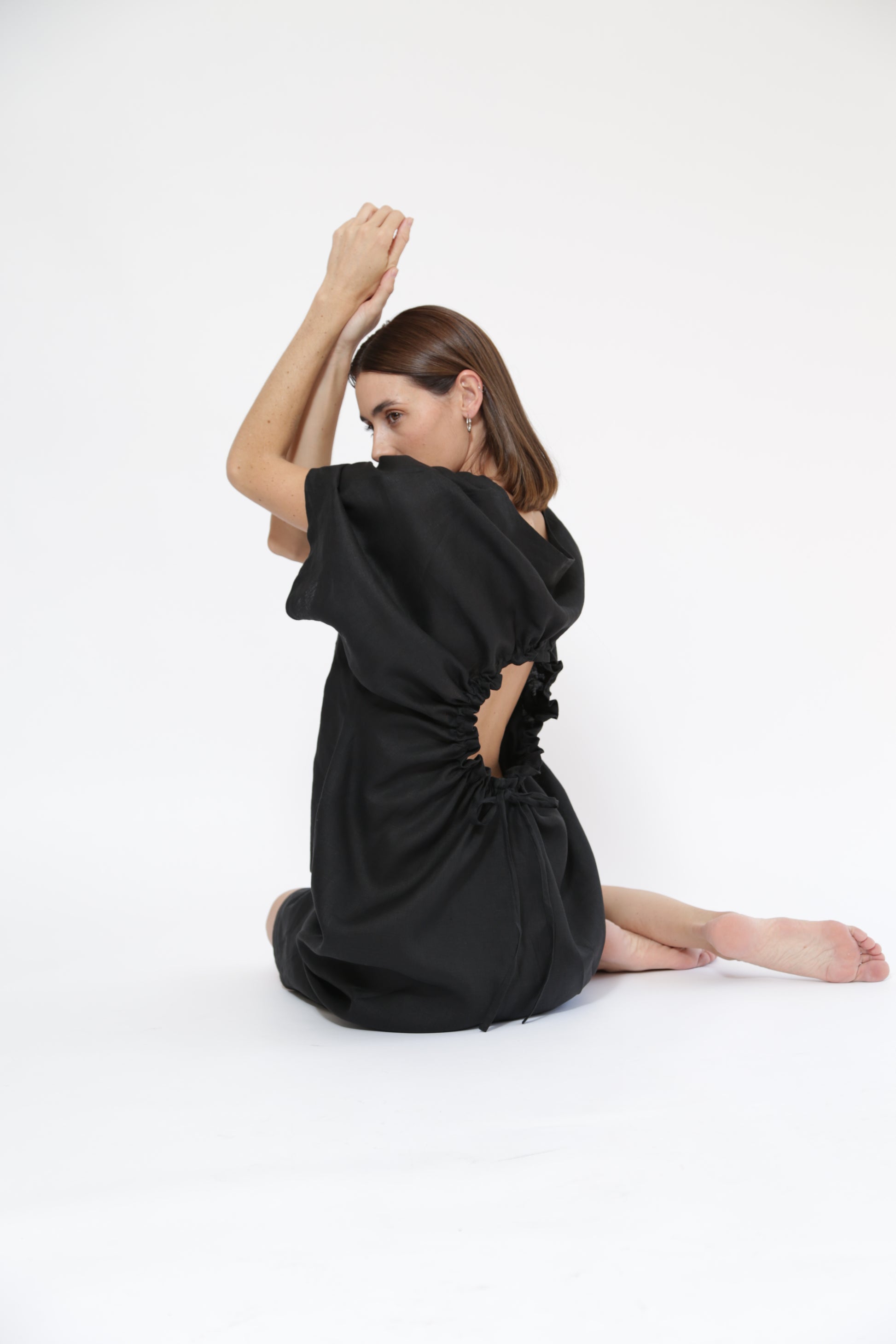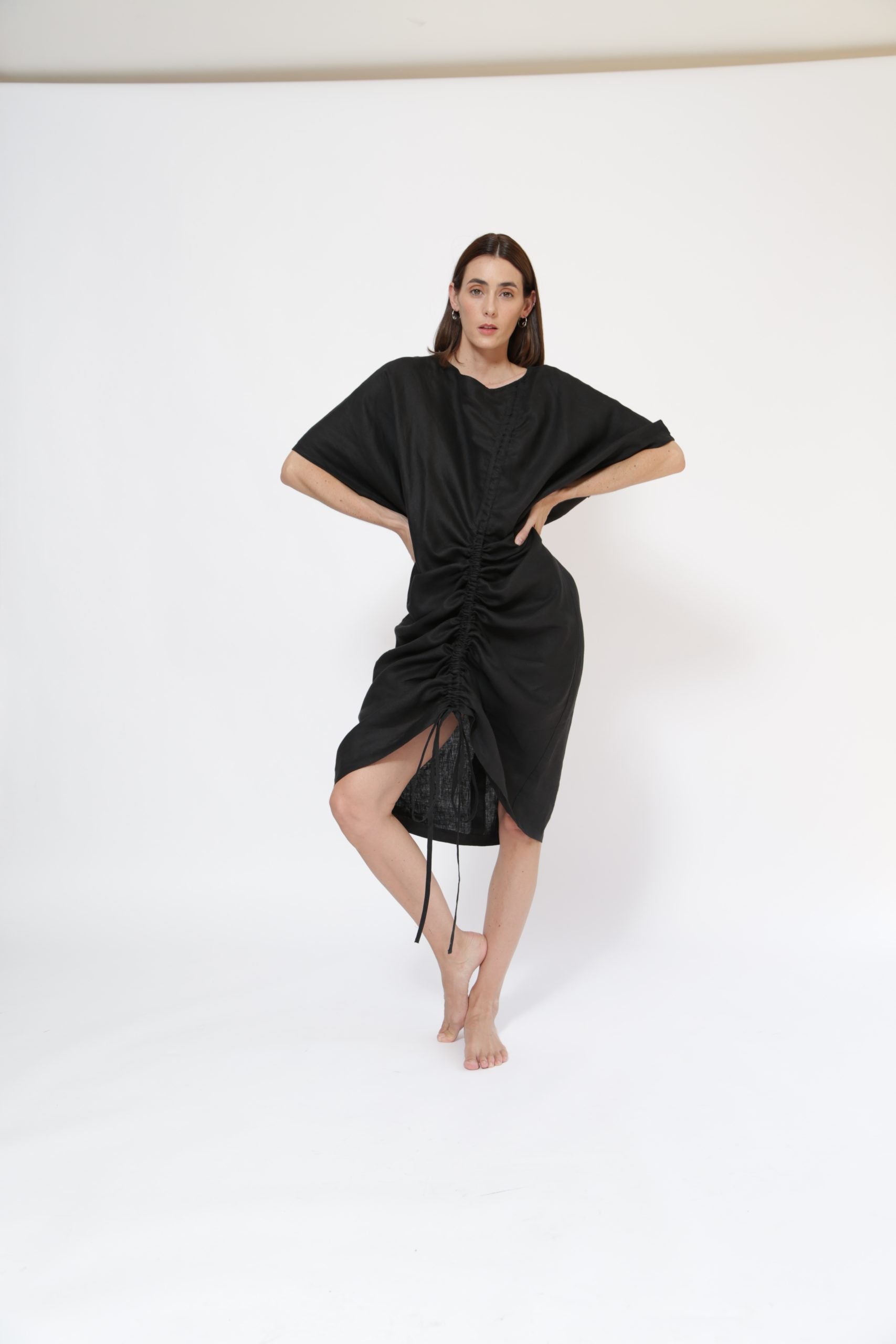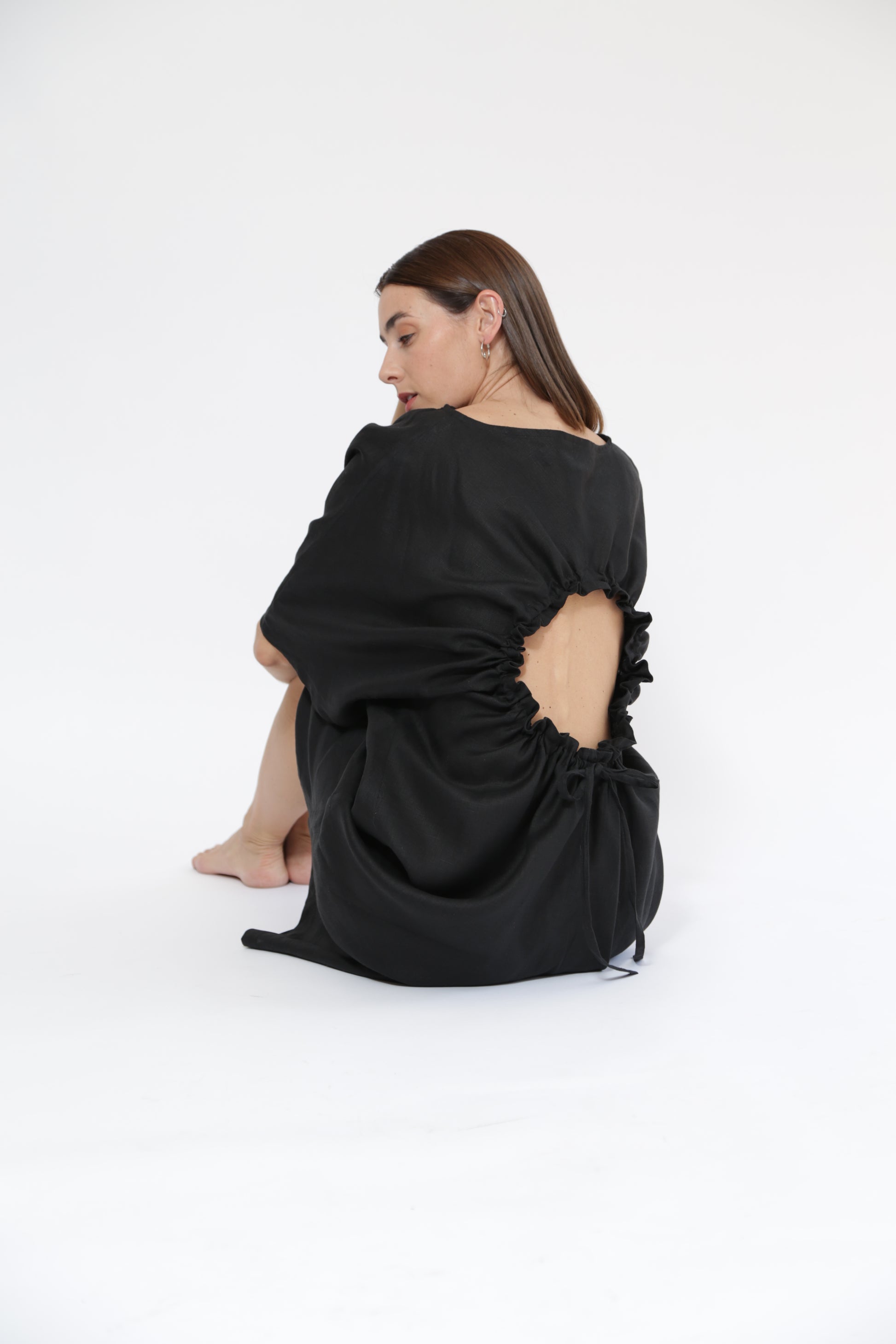 Vestido inteligente con opción a hacerlo corto con jareta en centro delante y detalle en espalda con jareta ajustable.