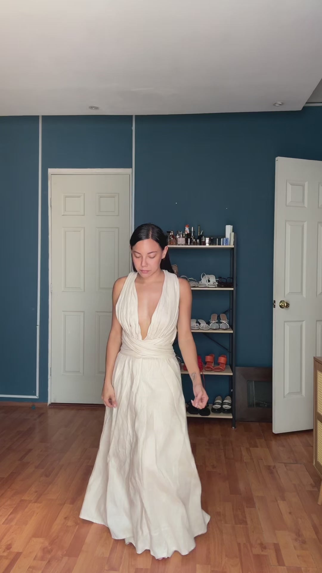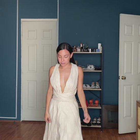 Vestido multifuncional con diseño ajustable. Puede usarse suelto, anudado o cruzado según tu movimiento.