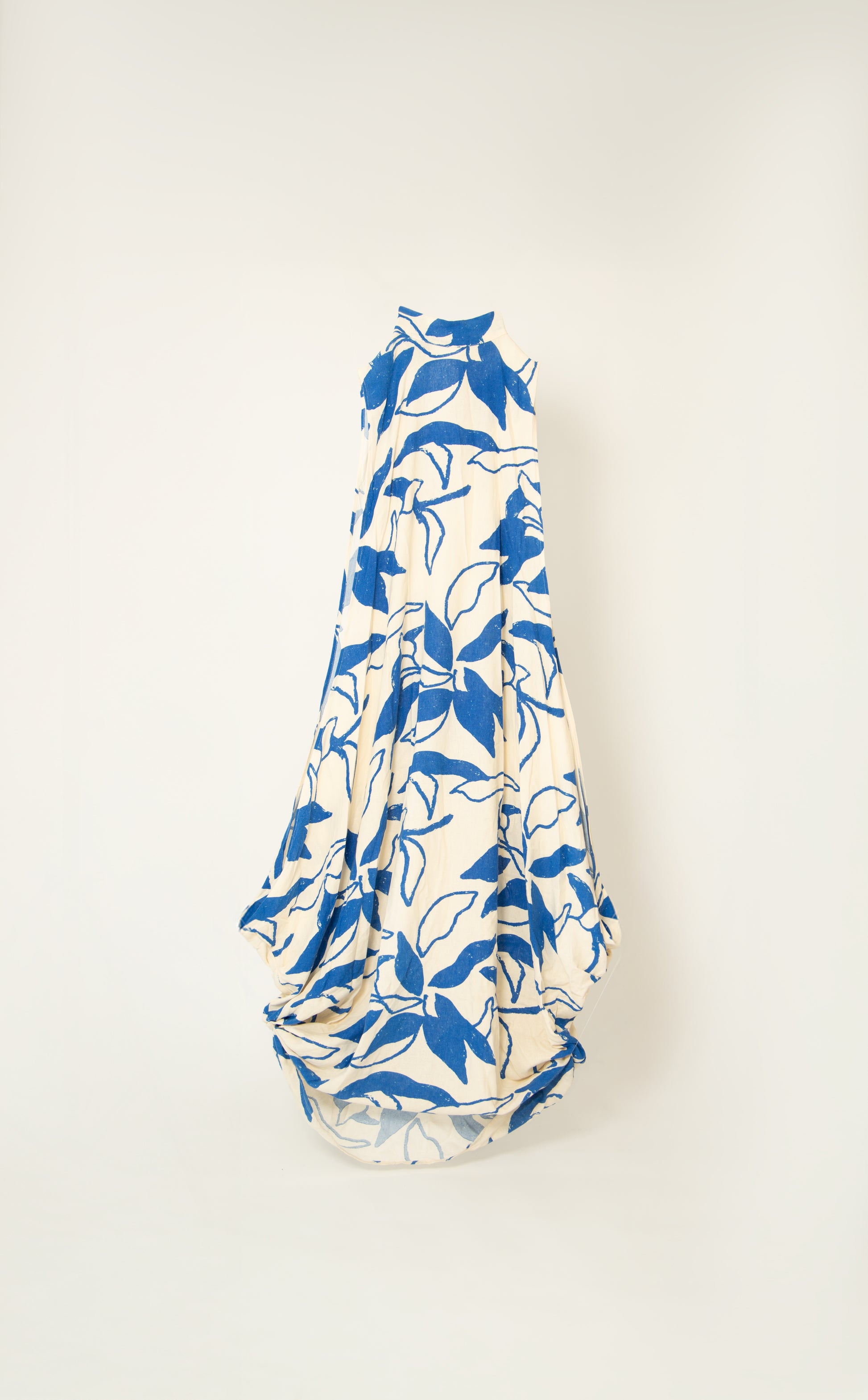La modelo en Vestido Simone Print floral azul mide 173cm/5'8" y está usando una talla 2.